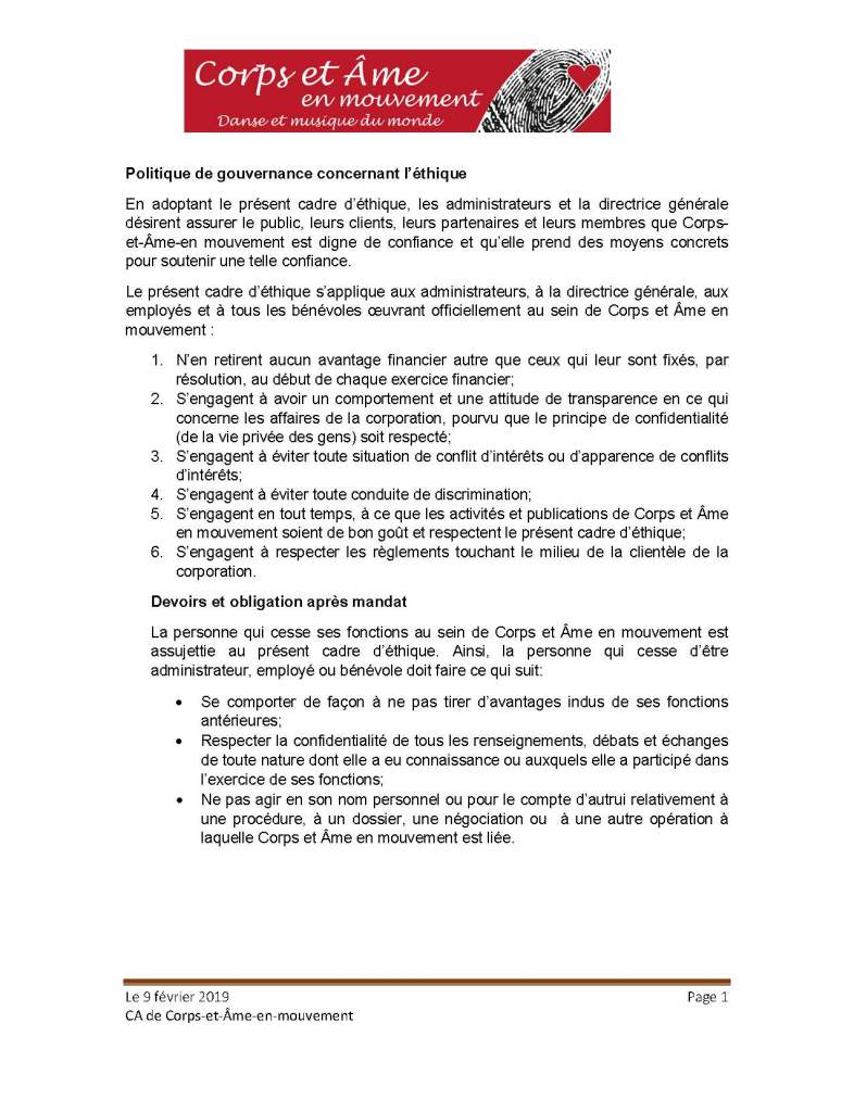 Politique concernant l’éthique