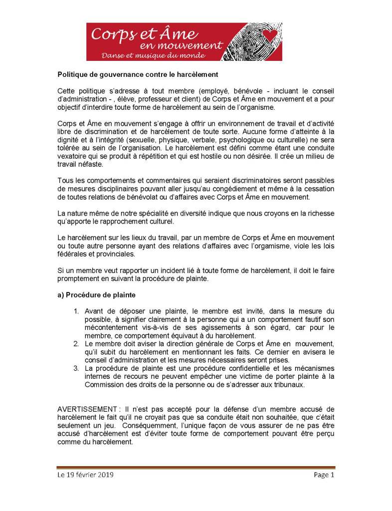 Politique contre le harcèlement